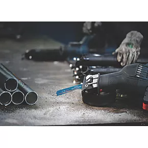 Lasts up to 50x longer than a bi-metal blade in tough materials. Cuts medium-thick metals efficiently and with minimum vibration. Extreme durability is built into the blade with carbide technology. Carbide teeth have a fine pitch meaning that individual teeth do not catch in thinner sheets and medium-gauge pipes. Fits all S-shank (sabre / demolition) reciprocating saws.