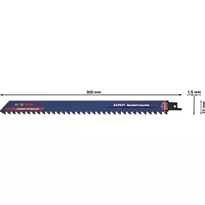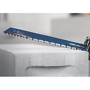 Specialist blade for aerated concrete blocks commonly used in modern housebuilding and construction. Carbide technology ensures teeth can cut through these materials with ease. Fits all S-shank (sabre / demolition) reciprocating saws.