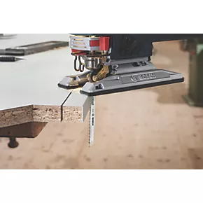 Offers a tear-free cut on both sides with counter-directed teeth. Made from bi-metal strip of high-speed steel bonded onto a flexible steel blade giving strength and flexibility. Robust enough to cut laminated chipboard kitchen tops or hardwood. Ideal for tear-free straight cuts (T308BF) and for accurate angle tear-free cuts (T308BFP).