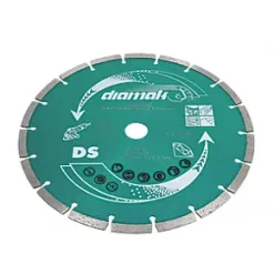 General purpose blade for use on concrete materials including slabs, bricks, block sandstone, slate and limestone. Can be used wet or dry.
